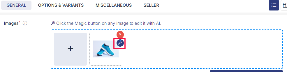 - Click on Magic Edit to generate AI Images. This feature helps you quickly enhance and edit your product images using AI, no design skills required.