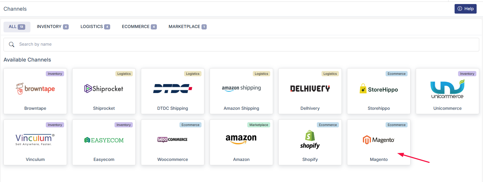 Step 2. On the left dashboard, go to Channels << Magento from the available channels (as shown).