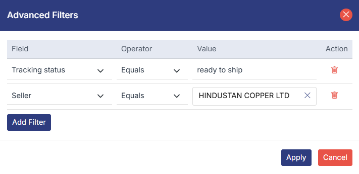 - Click Add Filter to apply multiple conditions.