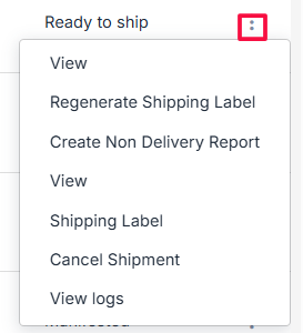 Shipment Actions (⋮ Menu)
