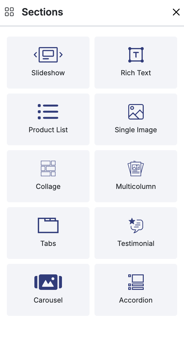 - Select the type of section you want to add.