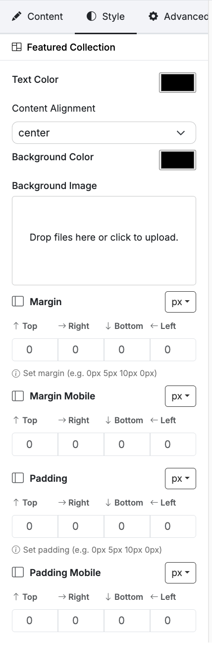 The Style tab lets you adjust the visual appearance of the section.