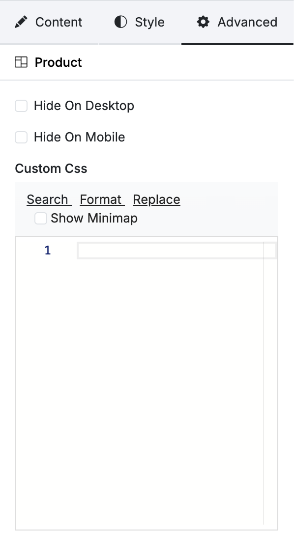 On the right panel, you will find three tabs: Content, Style, and Advanced.