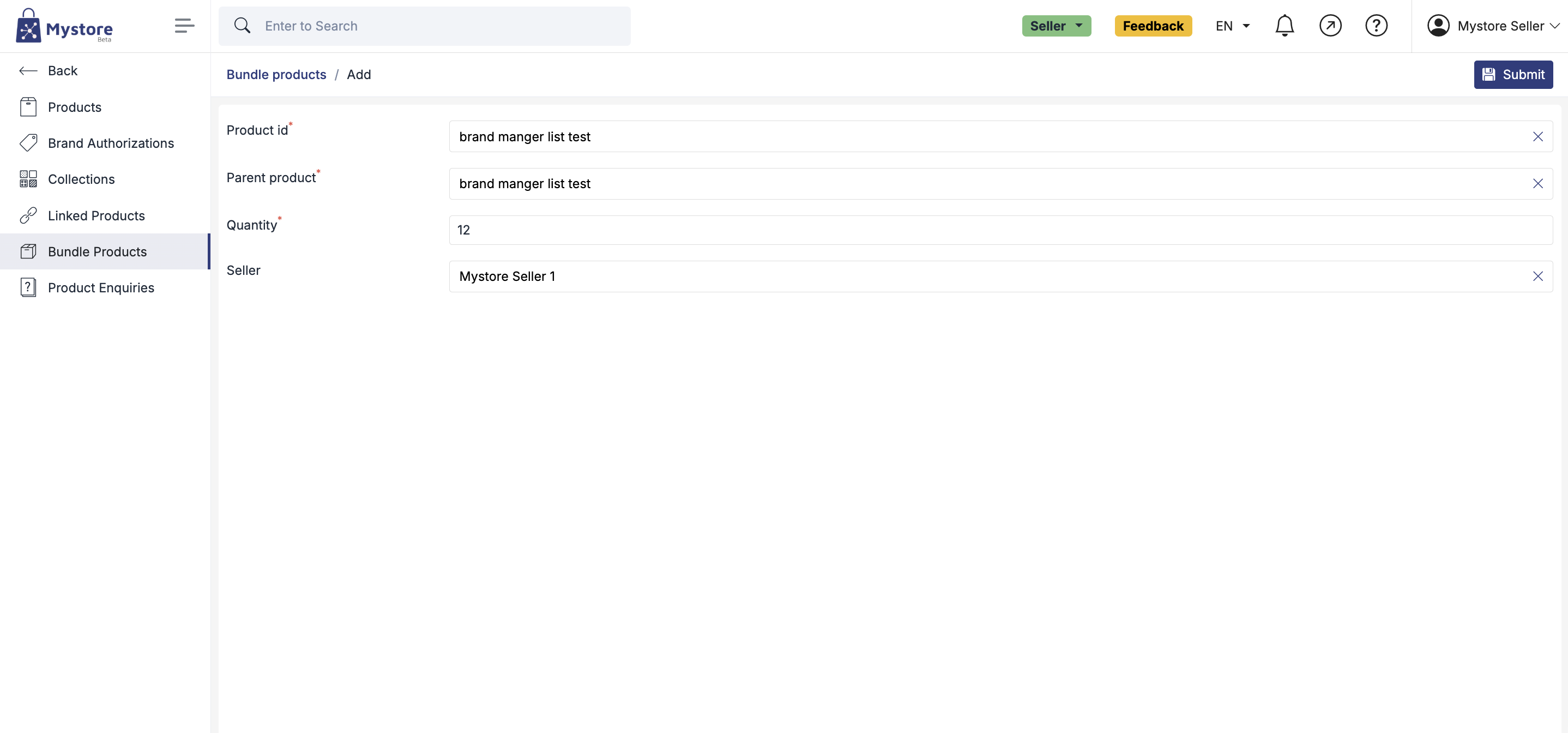 | Seller | Search and select the seller who owns this bundle (if your store supports multiple sellers). |