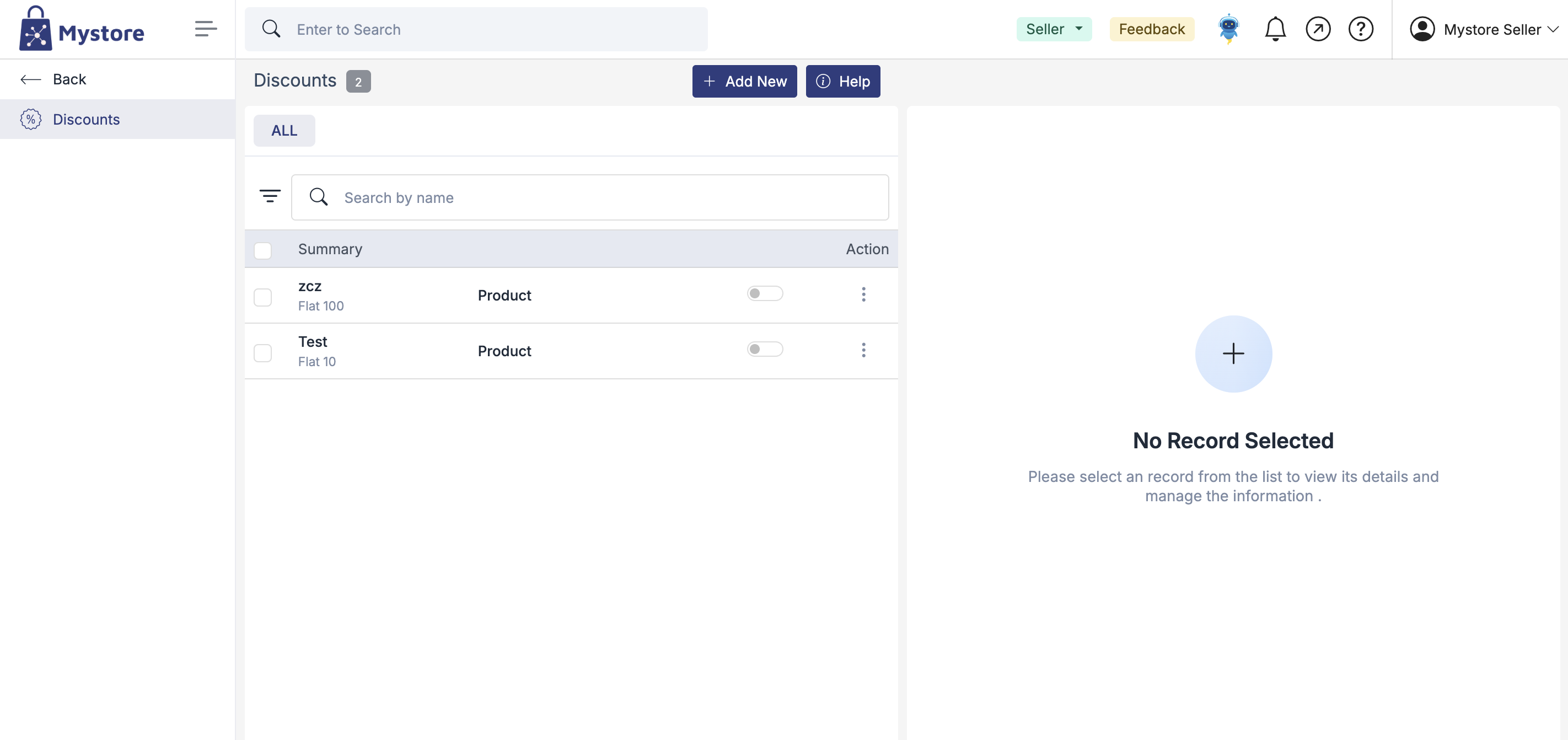 Go to the Discounts section of the Mystore Admin Panel to manage the discounts.