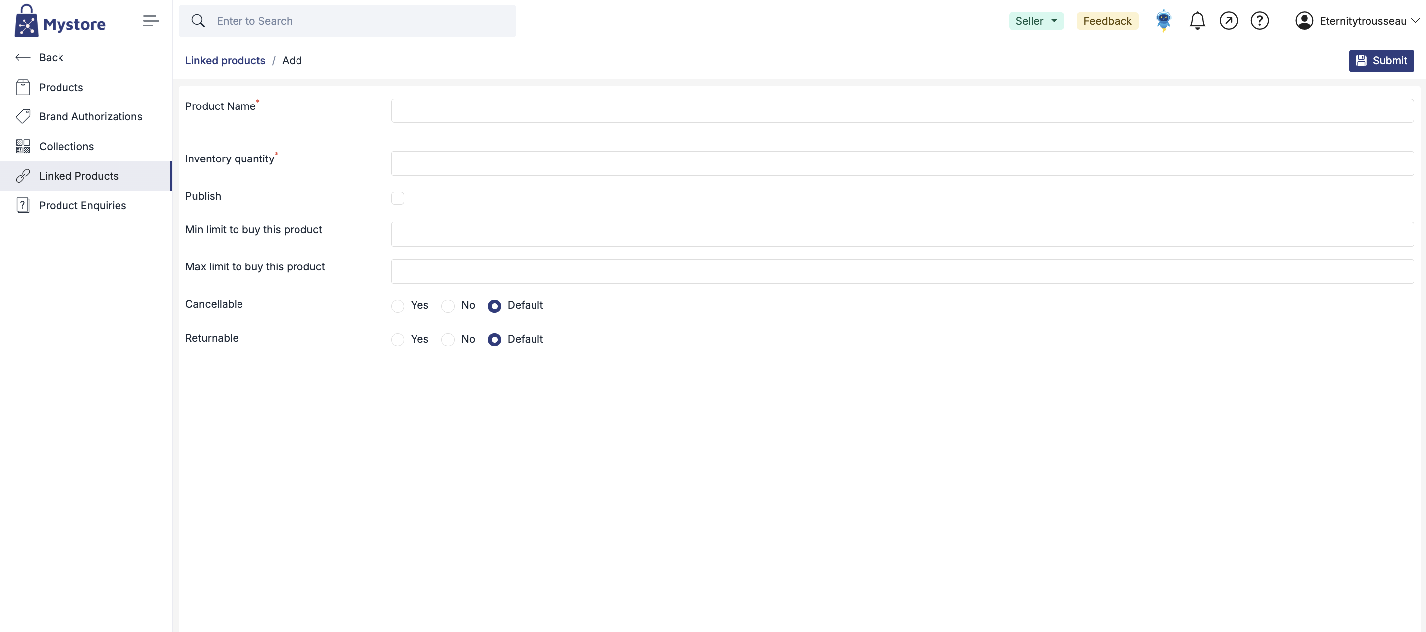 | Advance Settings | Enable this if you want to set purchase limits or manage product cancellation/return policies. |
