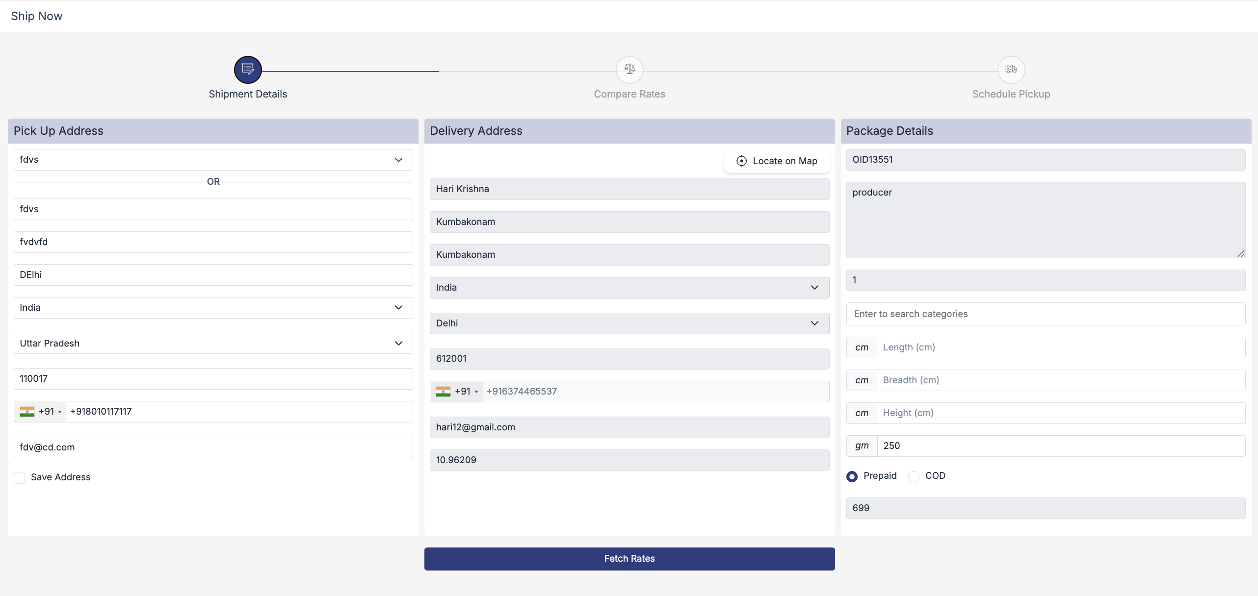 The Ship Now feature streamlines the process of dispatching orders directly from the Orders page. It automatically retrieves the order’s shipping details, lets you fill in any missing fields, compares courier rates, and schedules shipment — all in one place.